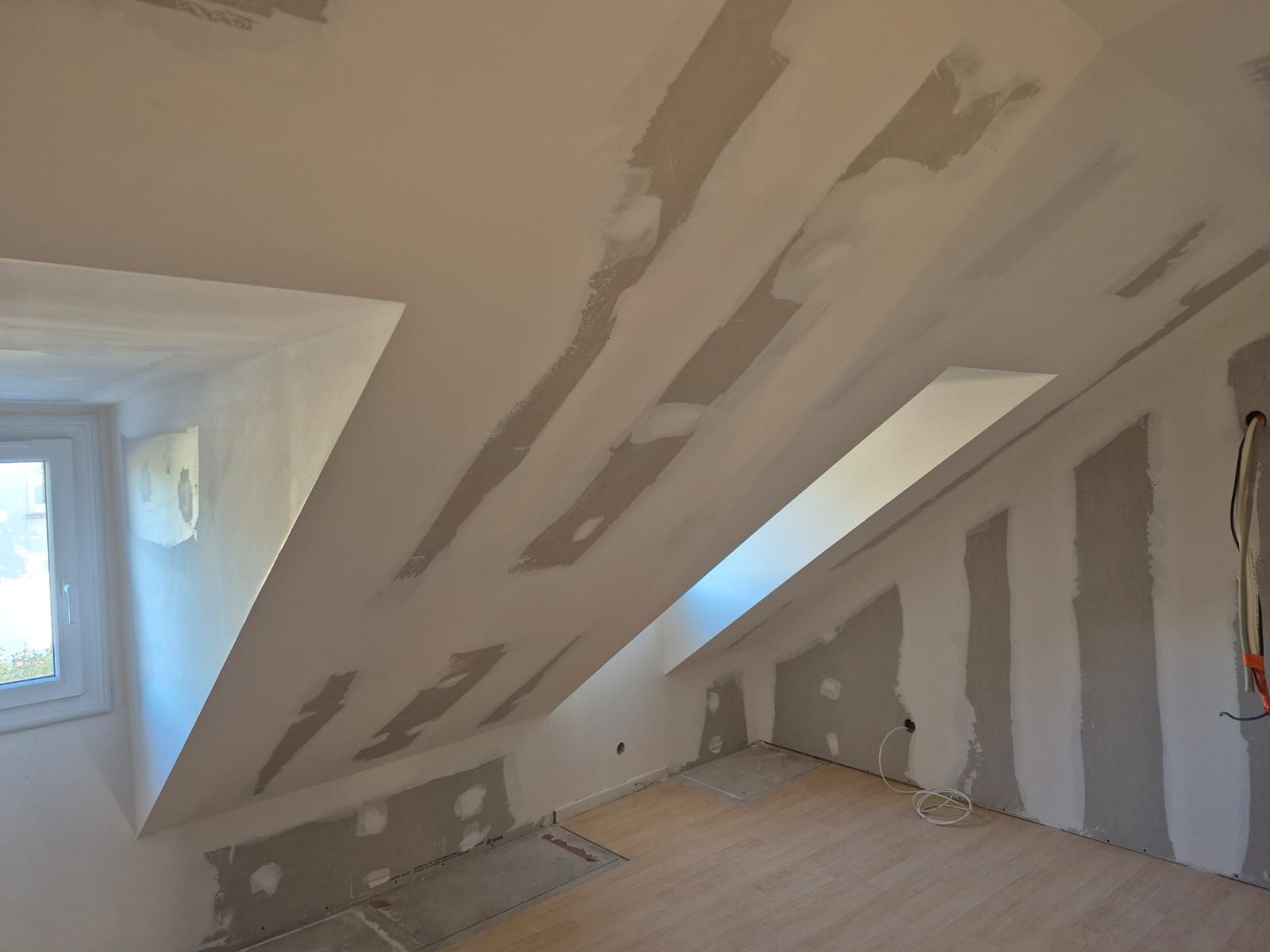 Après le montage du cadre, les plaques de Placo sont vissées solidement sur l'ossature. Pour finir, notre expert applique les bandes de joint et réalise les finitions pour obtenir une surface parfaitement lisse et prête à être peinte ou revêtue. Chaque étape est réalisée avec soin pour assurer un résultat de haute qualité.